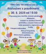 Dne 30. 8. 2025 proběhla v prostranství u Obecního domu Časy akce: "Rozloučení s prázdninami". Pro děti byl připraven odpolední program, včetně občerstvení a reprodukované hudby.A bylo i překvapení... jízda ve Velorexu. Vše podstatné je zachyceno v následující fotogalerii.
